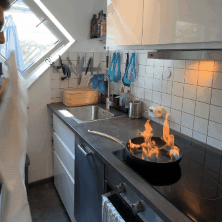Decke das Feuer mit der Löschdecke ab, um es in Sekundenschnelle zu löschen!